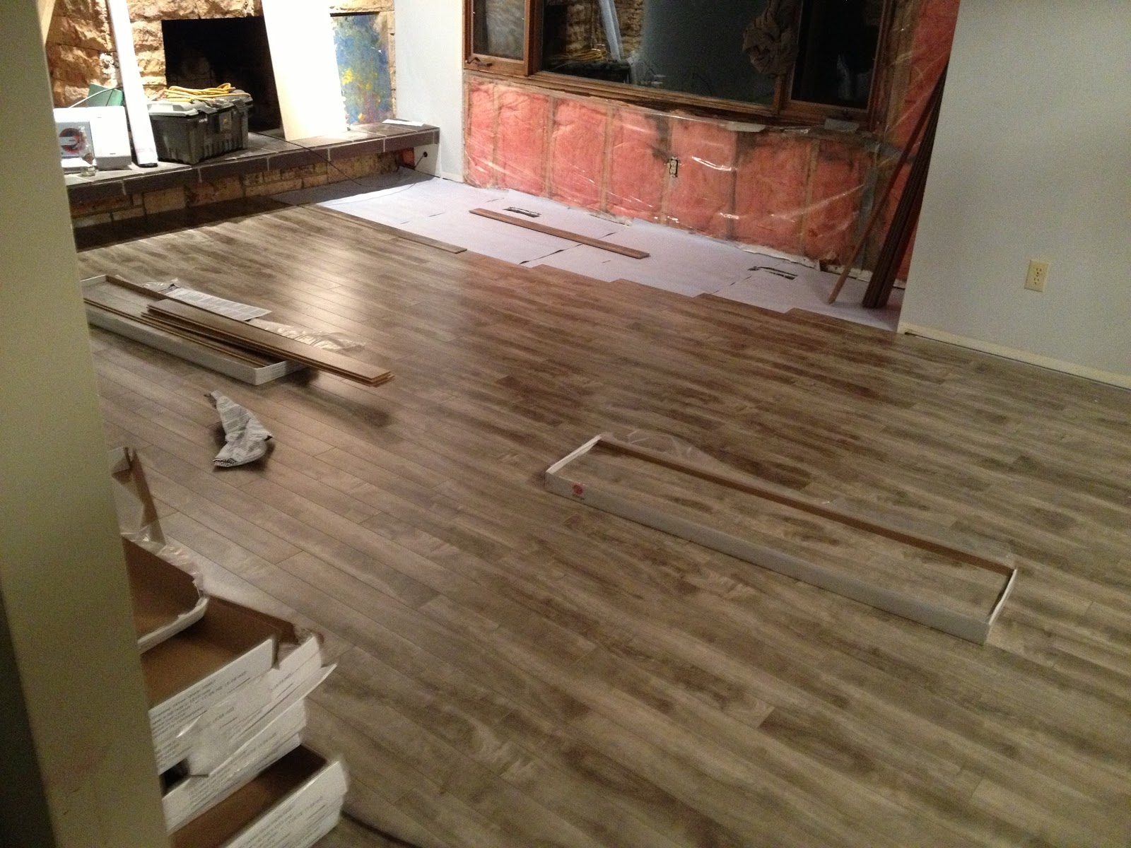 Flooring is just about done. It looks really nice to me! Of course that room was full of dog piss and 30 year old gross carpet not even 10 hours ago.